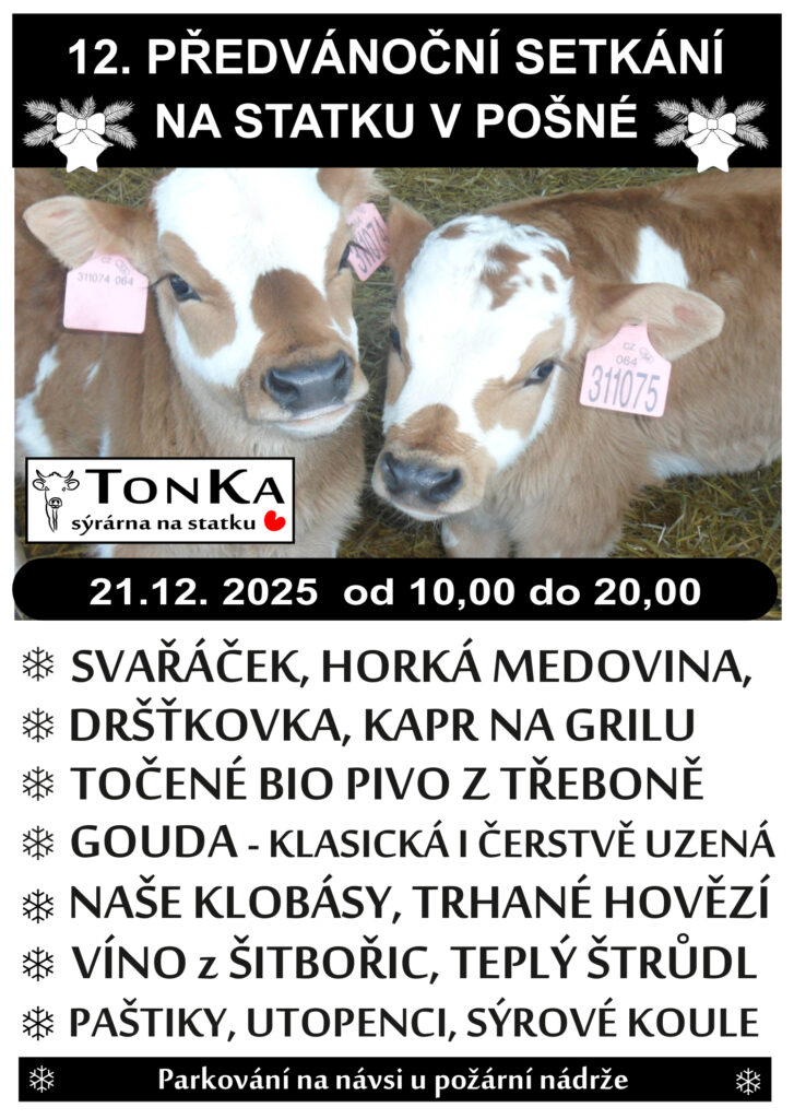 Těšíme se na vás 21. prosince od 10 do 20 hodin. Pošná – statek na návsi za požární nádrží.